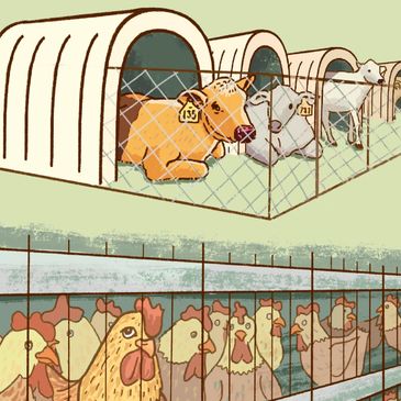 Factory farming is one of the most pressing issues of this generation. In today's age, animals are bred to bear extra weight for meat and overproduce dairy products beyond their limits. To compensate for the lack of space, these animals are forced to live in cages the size of a battery cage or yoga mat for years. Female calves are locked separately to conserve the milk supply, and male chicks and calves are sent immediately to slaughterhouses since they are of no value to the dairy industry. No living being deserves to suffer this way, and we are their only hope.